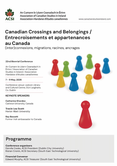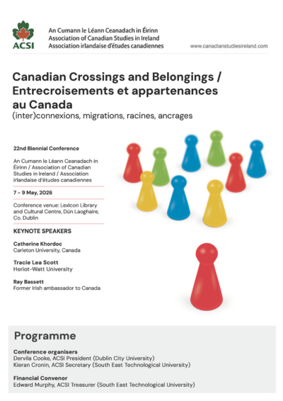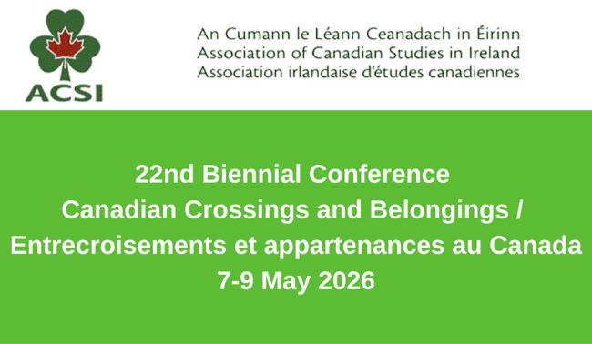The 22nd Biennial Conference of the Association of Canadian Studies in Ireland (ACSI) 'Canadian Crossings and Belongings' will take place at the LexIcon Library and Cultural Centre, Dublin between 7-9 May 2026.